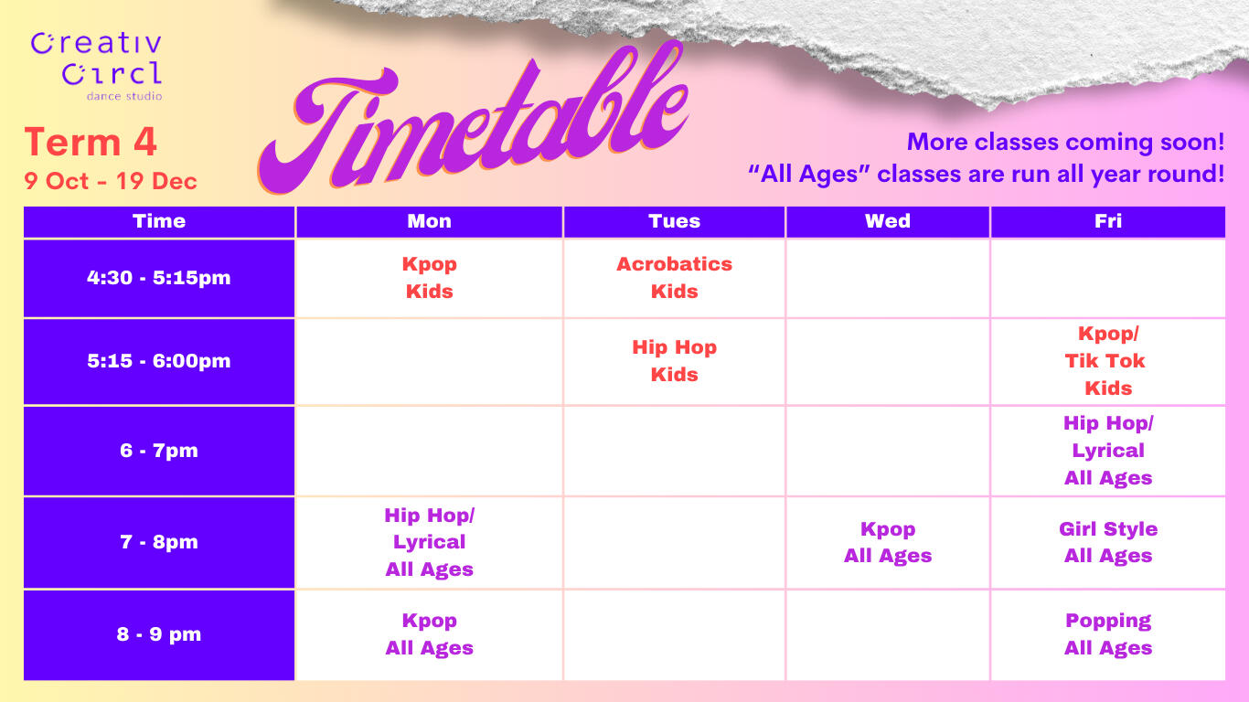 Participants must complete the enrolment process and make timely payments for classes and other services offered by Creativ Circl Dance Studio. Fees are non-refundable, except as outlined in the refund policy.Make-Up Classes
